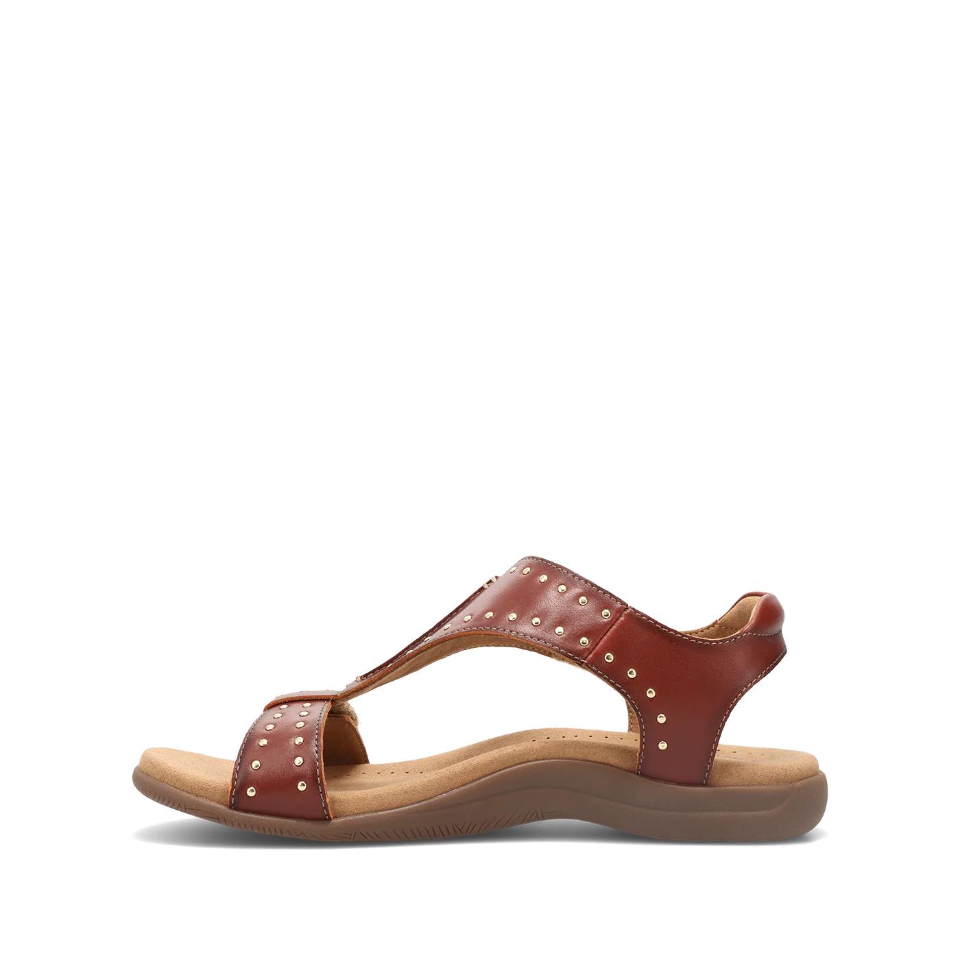 All eyes will be on the new Show Stopper! Gold mini studs add a bit of bling to our patented shield strap design with two adjustable hook and loop straps - making them perfect for sunny day strolls and a chic finishing touch for nights on the town! Enjoy luscious soft leather and an embossed microfiber footbed with an antimicrobial shield that keeps your feet cool and dry. The soft Cool Recovery Foam® padding of our Soft Support™ sandal collection provides maximum shock absorption with flexible and durable rubber outsoles.